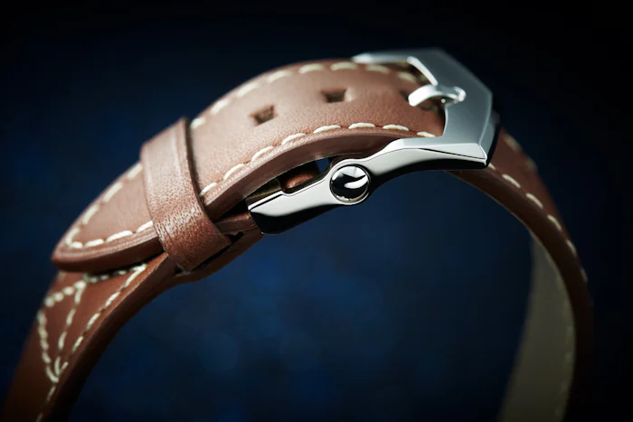A differenza di altri modelli di orologi Patek Philippe che utilizzano un cinturino in pelle di coccodrillo, il Pilota Calatrava utilizza una pelle marrone scivolosa che contrasta con una fibbia metallica - lo stesso stile di chiusura della cintura protettiva del pilota.